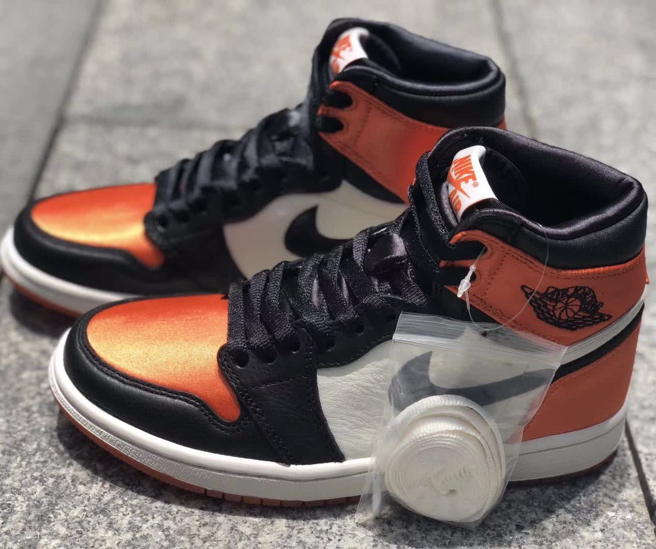 未分類 Air Jordan I Satin “Shattered Backboard” details photo 2018-05-012018-05-01 Laceup 0 Comments Air Jordan I Satin”Shattered Backboard” will be same leather as 2015 , feature with satin on the toe-box, heel, ankle collar. It Will be release on 5/5 for woman’s size $160 Color: Black/Starfish-Sail-Black Style Code: AV3725-010